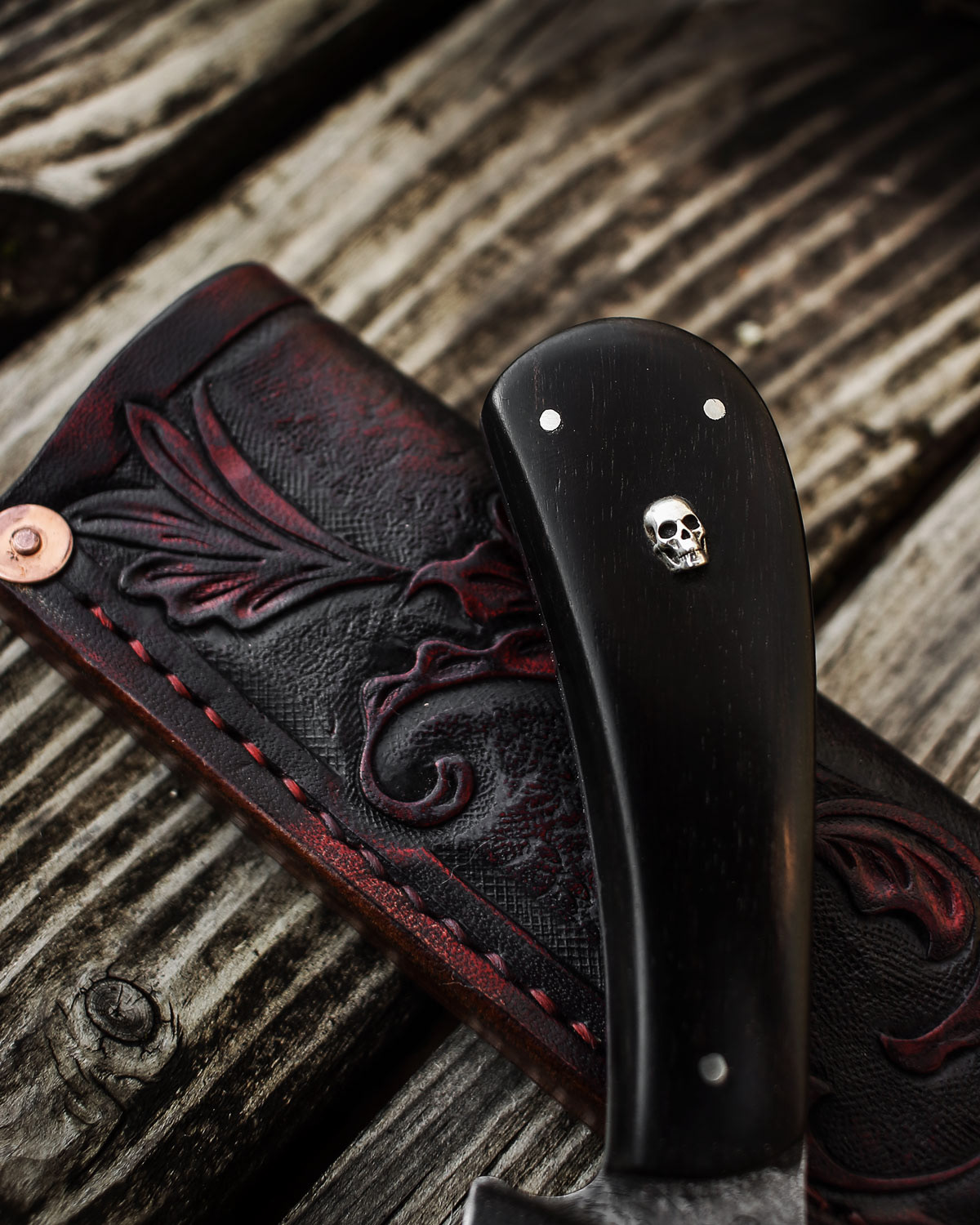Manche: Ebene de Macassar & Sterling silver skull inlay.