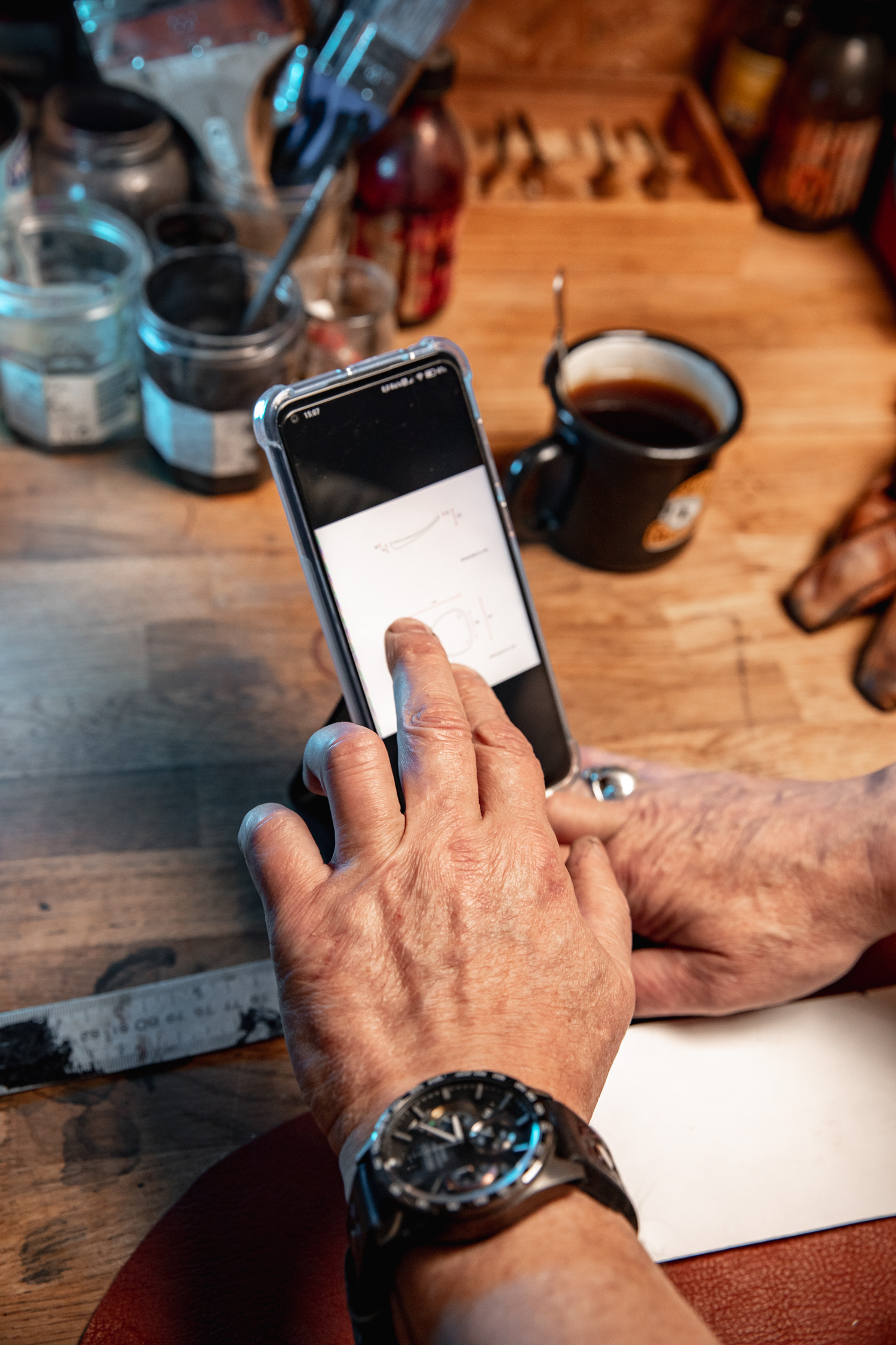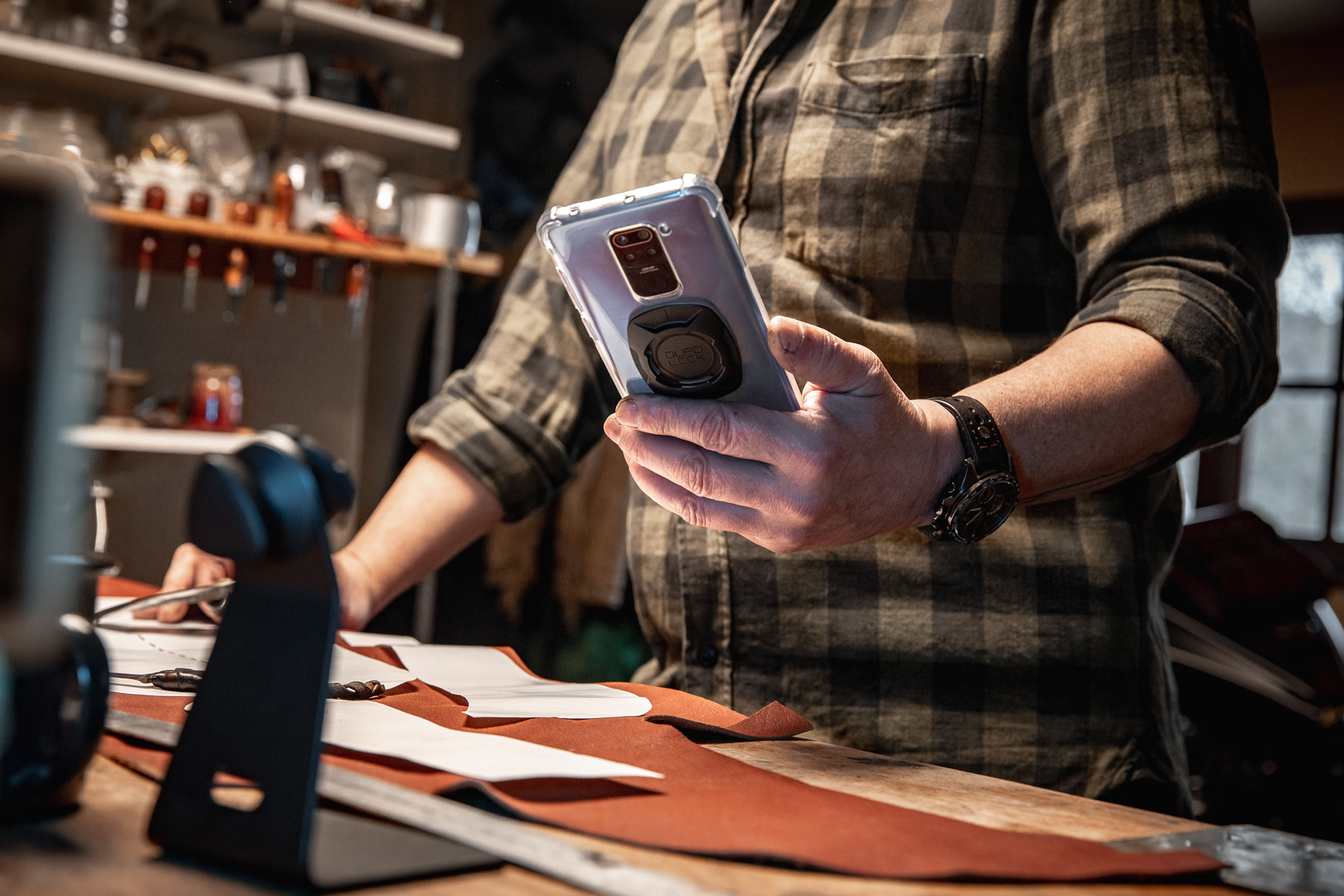Focus on the work of Bruno Duffort using the Desk Mount made by Quad Lock